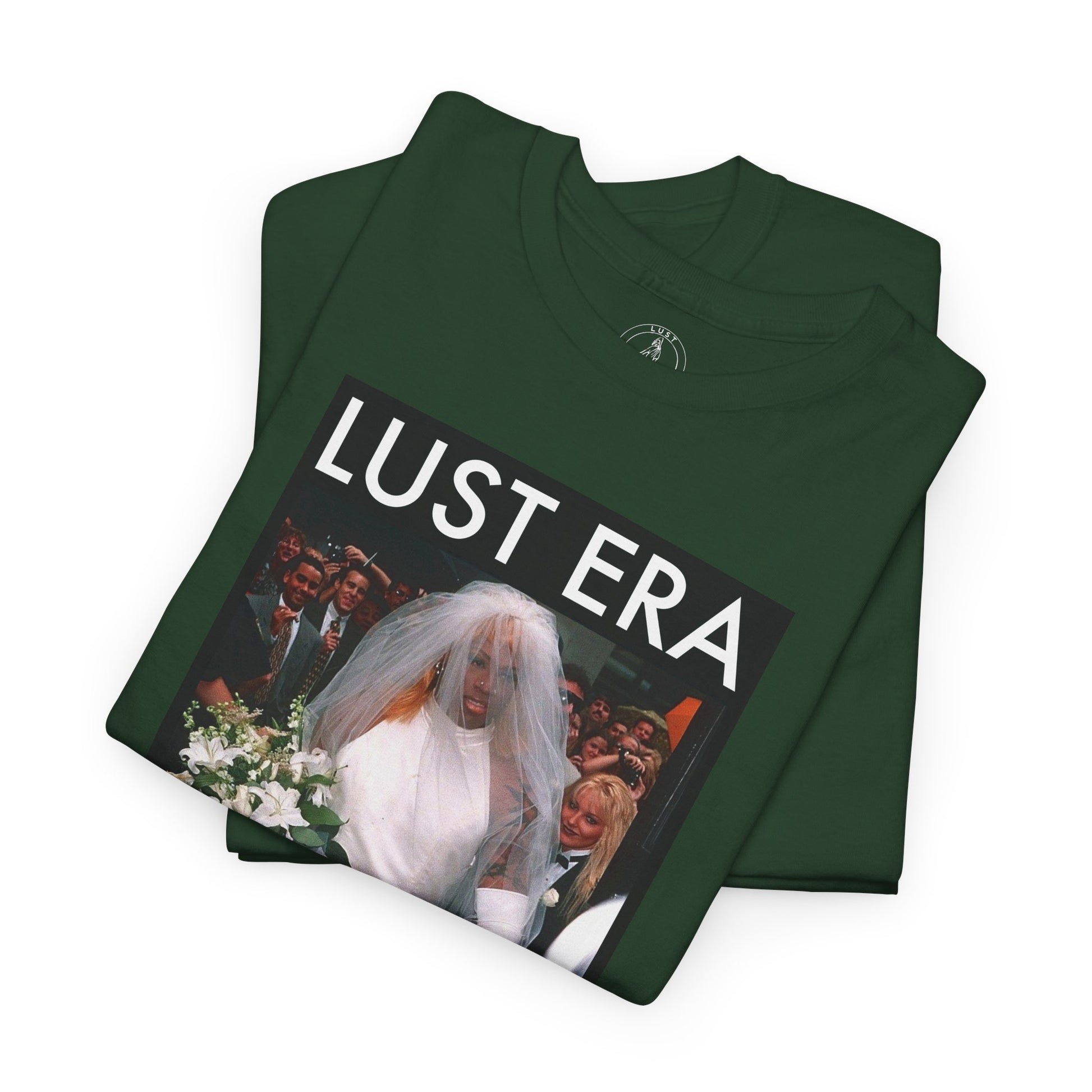 Soft, roomy, and unapologetically bold — this classic tee wears like a memory you reach for again and again. The central graphic reads “LUST ERA” above a dreamy, vintage-inspired portrait that feels cinematic and slightly surreal. Wear it tucked into high-waisted jeans or layered under a blazer for contrast; it settles into your everyday rotation and gives any outfit an artful, slightly rebellious edge. The fabric has a smooth, substantial hand that holds prints brilliantly, and the crew neck keeps the silhouette clean while the relaxed fit keeps movement easy. This shirt speaks to someone who collects feelings, moments, and images — the kind of person who loves to let a single striking print start conversations.